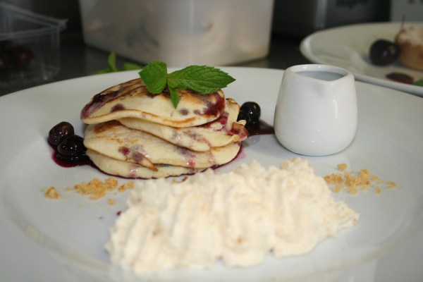 Blueberry pancakes, praline cream